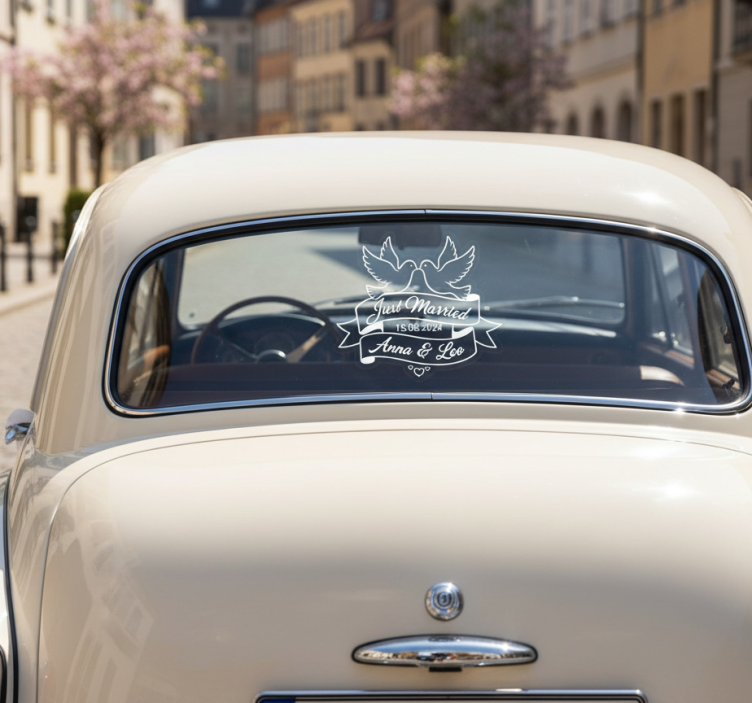 Der Autoaufkleber "gerade verheiratet" liebestörchen ist die perfekte Wahl, um Ihr Auto auf kreative Weise zu verschönern und Ihre Freude über die Ehe mit anderen zu teilen! Ob auf Hochzeitsfahrten oder für eine romantische Ausfahrt – dieser Aufkleber zieht die Blicke auf sich und sorgt für ein Lächeln. Er verwandelt Ihr Fahrzeug in einen fröhlichen Blickfang und lässt jeden wissen, dass das frisch verheiratete Paar unterwegs ist!