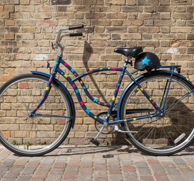 Ein Fahrrad Aufkleber bunte Sterne in verschiedenen Größen ist die perfekte Möglichkeit, Ihrem Fahrrad eine persönliche Note zu verleihen! Er verwandelt jedes Rad in ein fröhliches und einzigartiges Kunstwerk. Egal, ob Sie durch die Stadt radeln oder auf einem ruhigen Weg unterwegs sind, mit diesem Aufkleber werden Sie garantiert alle Blicke auf sich ziehen. Lassen Sie Ihrer Kreativität freien Lauf und dekorieren Sie Ihr Fahrrad nach Ihren Vorstellungen!