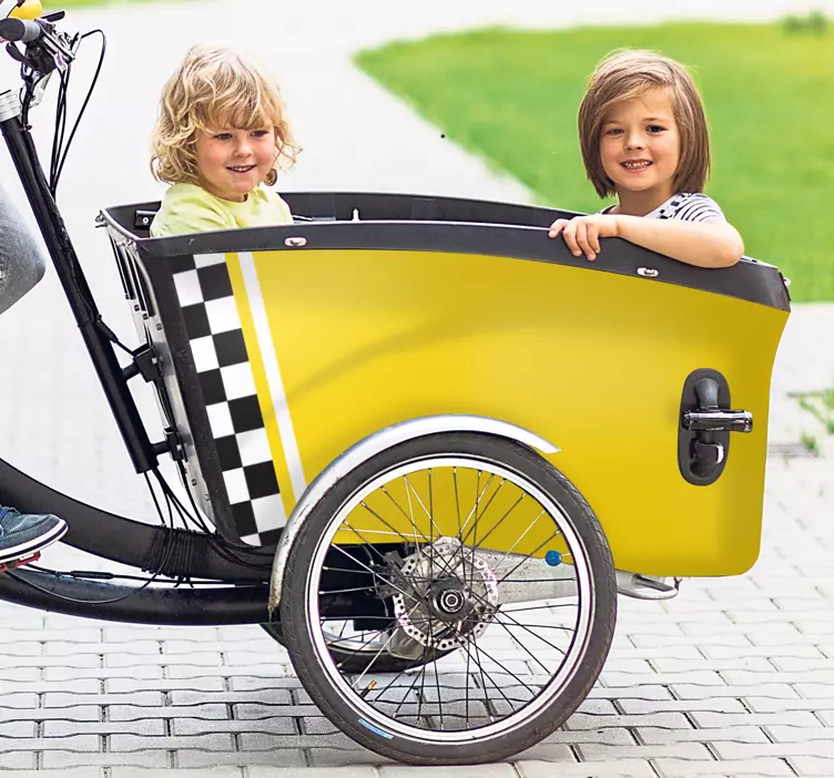Entdecken Sie unseren einzigartigen Fahrrad Aufkleber im gelbes taxi design, der mit einem fröhlichen und verspielten Design begeistert! Der Aufkleber zeigt ein leuchtendes gelbes Taxi, das auf spielerische Weise die Ladung von einem Fahrrad transportiert. Ideal für Kinder und alle, die Spaß am Radfahren haben, bringt dieser Aufkleber Farbe und Freude in Ihren Fahrrad-Alltag!