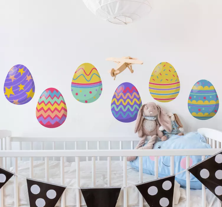 Entdecken Sie unser Feiertag Wandtattoo bunte Eierdekoration, das Ihr Zuhause in ein festliches Frühlingsparadies verwandelt! Dieses farbenfrohe Design mit lebhaften Mustern von bunten Eiern bringt die fröhliche Osternstimmung direkt zu Ihnen nach Hause. Die harmonische Kombination aus lebendigen Farben und fröhlichen Motiven sorgt dafür, dass Ihr Raum im Zeichen des Frühlings erstrahlt und eine einladende Atmosphäre schafft!