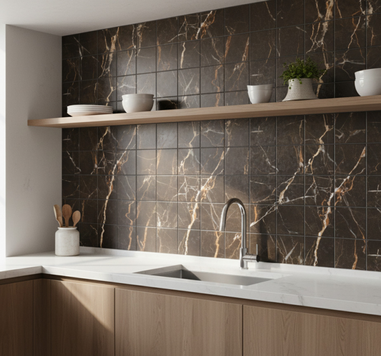 Referenz: A54982Verleihen Sie Ihrem Raum einen Hauch von Eleganz mit unseren Fliesenaufkleber marmor in schwarz und gold. Das atemberaubende Design kombiniert die zeitlose Schönheit von Marmor mit luxuriösen goldenen Akzenten, die jeden Raum aufwerten. Diese Aufkleber sind nicht nur ästhetisch ansprechend, sondern auch funktional und pflegeleicht. Die satinierte Oberfläche sorgt dafür, dass Lichtreflexionen vermieden werden, während die Farben lebendig und intensiv bleiben. Lassen Sie sich von der Einfachheit der Anwendung und der Freude an einem stilvollen Zuhause inspirieren!