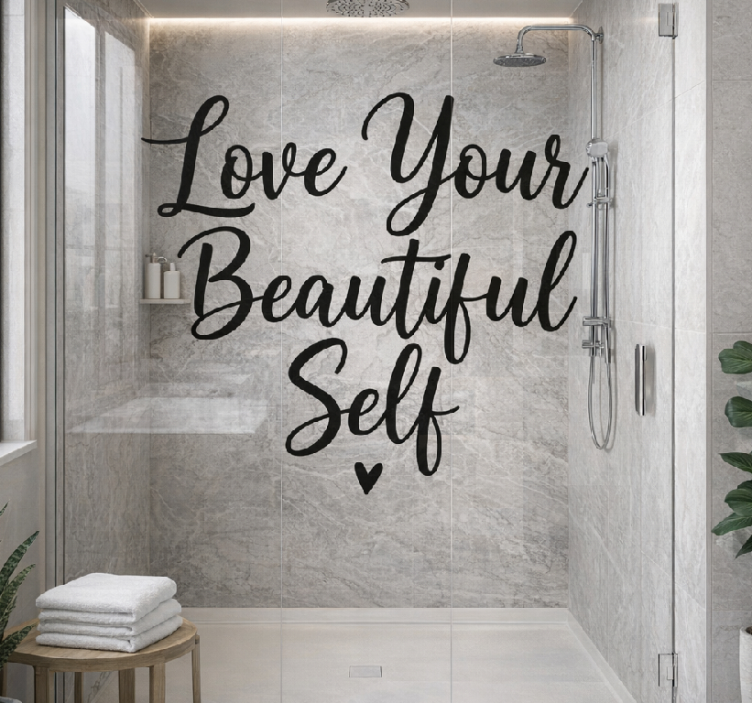 Die Folie Duschkabine folie duschkabine mit positiver selbstliebe typografie ist eine hervorragende Wahl für jeden, der sein Badezimmer dekorieren möchte. Diese Folie bringt nicht nur Farbe in Ihr Leben, sondern auch einen positiven Impuls! Ein inspirierendes Design kann Ihre Stimmung heben und bringt täglich Freude in Ihren Alltag. Verleihen Sie Ihrer Duschkabine einen besonderen Touch und schaffen Sie eine Umgebung, die zum Entspannen und Wohlfühlen einlädt!