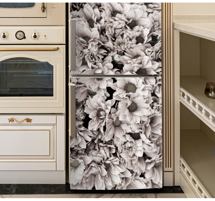 Verleihen Sie Ihrem Kühlschrank mit unserer Folie Kühlschrank mit elegantem blumendruck einen Hauch von Natur und Eleganz. Das Design zeigt wunderschöne Pfingstrosen in einem realistischen Schwarz-Weiß-Stil, der sich harmonisch in jede Küche einfügt. Diese blumige Folie verwandelt Ihren Kühlschrank in ein Kunstwerk und bringt ein Gefühl von Frische und Stil in Ihr Zuhause.