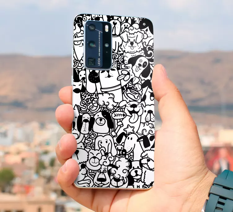Entdecken Sie den einzigartigen Huawei Sticker mit verspielten hundemotiven, der Ihre Smartphone-Oberfläche in ein fröhliches Kunstwerk verwandelt! Das Design zeigt eine lebendige Ansammlung von Hunden und Welpen in lustigen Mustern, die in harmonischem Schwarz und Weiß gehalten sind. Dieser Aufkleber ist nicht nur ein Blickfang, sondern bringt auch eine spielerische Note in Ihren Alltag. Verleihen Sie Ihrem Telefon mit unseren kreativen Zeichen einen individuellen Touch!