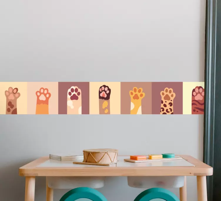 Referenz: A53447Ein lebhaftes Arrangement verschiedener Pfotenabdrücke, das unterschiedliche Muster und Farben zeigt. Dieses verspielte Design fängt das Wesen verspielter Haustiere ein und ist perfekt für Tierliebhaber, die ihrem Raum eine verspielte Note verleihen möchten.