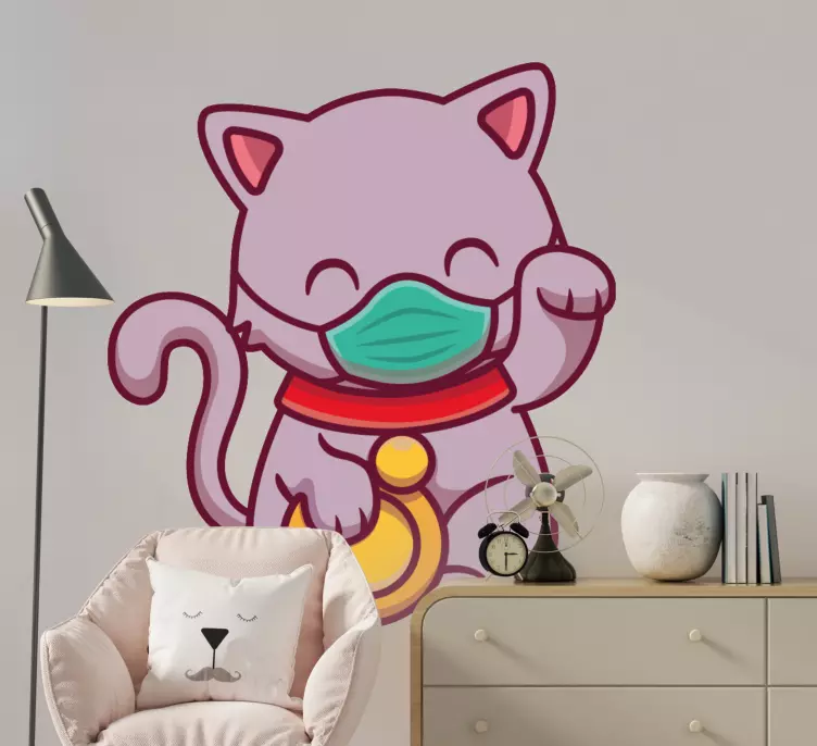 Unser Katzen Sticker glückliche katze mit maske bringt Freude und Farbe in jeden Raum! Das grafische Design zeigt eine niedliche Karikatur einer Katze mit einer Gesichtsmaske, die verspielt und charmant wirkt. Dieser Sticker ist nicht nur ein schöner Blickfang, sondern auch ein Ausdruck von Humor und Kreativität.