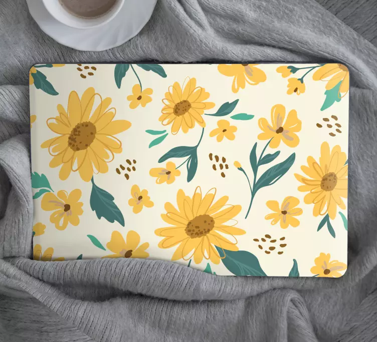 Unser Laptop Aufkleber fröhliches Blumenmuster bringt frische Farben und Lebensfreude auf Ihren Laptop! Das Design besticht durch eine lebendige Illustration von Sonnenblumen und anderen Blumen, die harmonisch zusammenkommen, um die Schönheit der Natur zu feiern. Mit leuchtendem Gelb und detailgenauen Entwürfen zieht dieser Aufkleber alle Blicke auf sich und verwandelt Ihr Gerät in ein Kunstwerk!