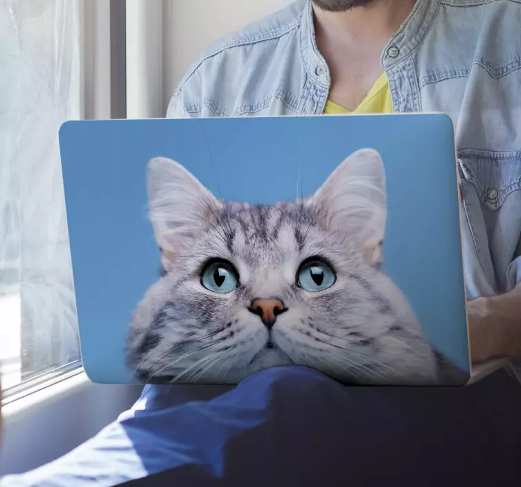Entdecken Sie die bezaubernde Welt unseres Laptop Aufkleber katzenkopf laptop cover, das mit einem grafischen Design besticht, das eine große, katzenartige Katze mit großen Augen auf einem blauen Hintergrund zeigt. Dieser Aufkleber fängt die Essenz von Haustieren und der charmanten Fotografie ein und verwandelt jeden Laptop in ein einzigartiges Kunstwerk. Die Kombination aus lebendigen Farben und einem niedlichen Katzenkopf sorgt dafür, dass Ihr Gerät nicht nur geschützt, sondern auch zum Blickfang wird!