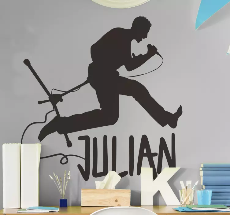 Erleben Sie die aufregende Welt der Musik mit unserem musikalischen Wandtattoo energetische Gesangsdarbietung. Dieses faszinierende Design zeigt die Silhouette eines Rockstars in voller Aktion, umgeben von dynamischen Elementen, die die Energie und Leidenschaft der Rockmusik perfekt einfangen. Der Name des Künstlers kann individuell angepasst werden, wodurch dieses Wandtattoo zu einem einzigartigen Kunstwerk wird, das jeden Raum in eine kreative Performance verwandelt. Die künstlerische Darstellung spricht insbesondere jugendliche Musikliebhaber an und verleiht jedem Raum eine lebendige Atmosphäre.