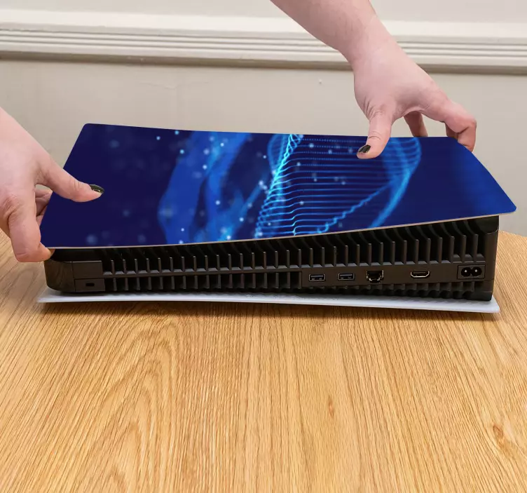 Ps5 skin mit blauen wellenmustern