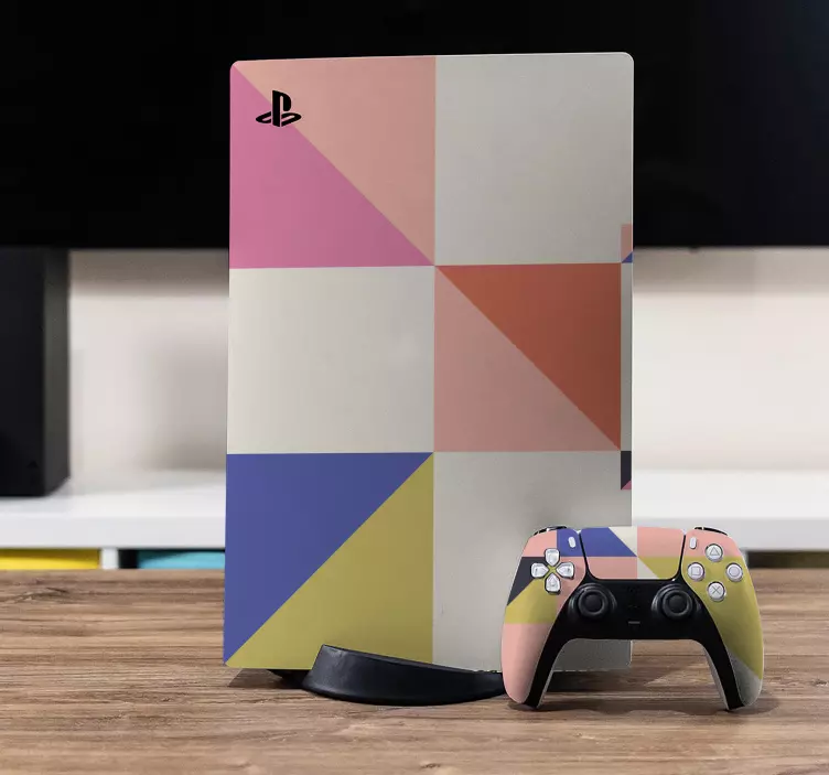 Entdecken Sie unser einzigartiges PS5 Skin mit lebhaften farbmustern, das Ihre PlayStation 5 in ein wahres Kunstwerk verwandelt! Das grafische Design kombiniert geometrische Elemente wie Dreiecke und Quadrate in einem mehrfarbigen und bunten Arrangement, das sofort ins Auge fällt. Verleihen Sie Ihrer Spielekonsole einen individuellen Look, der nicht nur schützt, sondern auch begeistert!