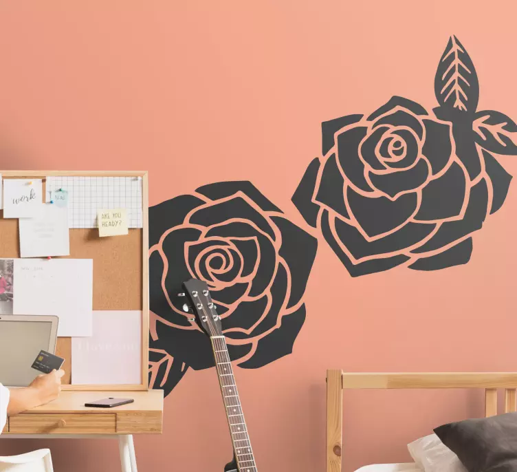 Verleihen Sie Ihrem Raum mit unserem Wandtattoo Blumen elegantes rosenbouquet einen Hauch von Eleganz. Dieses atemberaubende Design zeigt eine harmonische Anordnung von Rosen und Blättern, die in einer stilvollen Silhouette präsentiert werden. Die Kombination aus schwarzer Farbe und floralen Elementen bringt die Schönheit der Natur direkt in Ihr Zuhause und schafft eine Atmosphäre, die sowohl beruhigend als auch inspirierend wirkt.
