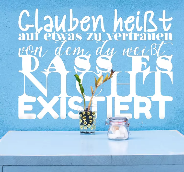 vertrauen von dem du weißt, dass es nicht existiert“. Der Aufkleber eignet sich besonders gut als Wanddekoration in Ihrem Wohnzimmer oder Büro, aber auch zum