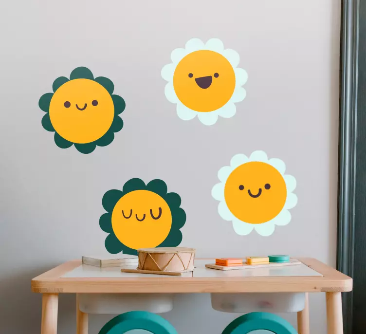 Verleihen Sie dem Kinderzimmer mit unserem bezaubernden Wandtattoo Kinderzimmer fröhliche blumenfiguren einen Hauch von Freude! Die fröhlichen Sonnenblumen strahlen Glück aus und verleihen dem Raum eine spielerische Atmosphäre. Die niedlichen, lächelnden Blumen in bunten Farben sorgen für eine dekorative Gestaltung und schaffen eine einladende Umgebung für Ihre Kleinen. Dieses Design ist nicht nur optisch ansprechend, sondern auch inspirierend für die Fantasie!