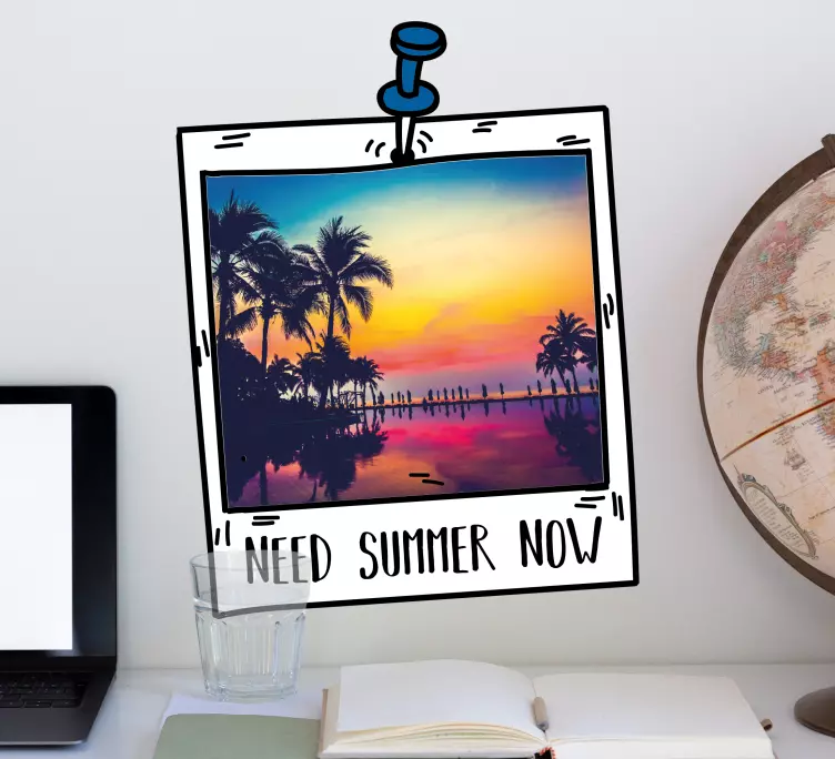 Verleihen Sie Ihrem Raum eine einzigartige Atmosphäre mit unserem Wandtattoo Natur Sommerlandschaft Rahmung. Dieses beeindruckende Design vereint die Schönheit eines Polaroid-Fotos mit einem traumhaften Strand, einem atemberaubenden Sonnenuntergang und der entspannten Stimmung des Sommers. Palmen umrahmen das Bild und erzeugen ein echtes Sommergefühl, während ein inspirierender Text das Gesamtbild perfekt ergänzt. Bringen Sie die Magie des Sommers in Ihr Zuhause!