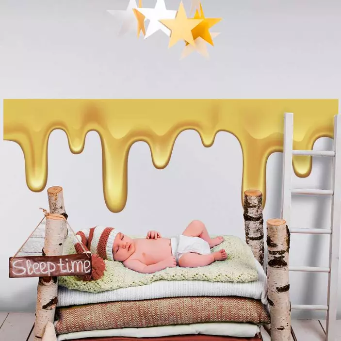 Referenz: A52008Goldene Tropfelemente schaffen eine verspielte und einladende Atmosphäre, die perfekt für Kinderzimmer ist. Die glatte Textur und der lebendige Farbton ziehen die Aufmerksamkeit auf sich und verleihen der Umgebung einen fantasievollen Touch. Ideal, um imaginative Themen zum Leben zu erwecken und die Kreativität in jedem Raum zu fördern.