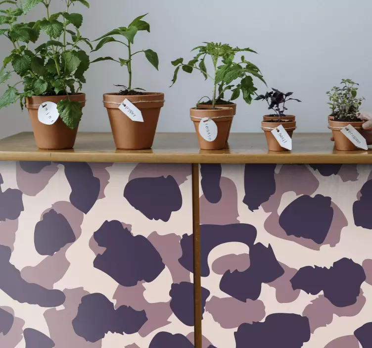 Verleihen Sie Ihrem Raum einen Hauch von Eleganz und Wildnis mit unserem Wandtattoo Ornament im leopardenmuster. Dieses stilvolle Design kombiniert die Schönheit der Natur mit einem modernen, abstrakten Look. Die leuchtenden Violett- und Lilatöne sorgen für einen auffälligen Akzent, während das Tierdruck-Muster eine interessante und dynamische Atmosphäre schafft. Die Kombination aus Tarnung und grafischen Elementen macht dieses Wandtattoo zu einem einzigartigen Dekorationselement, das jede Möbelgruppe bereichert.