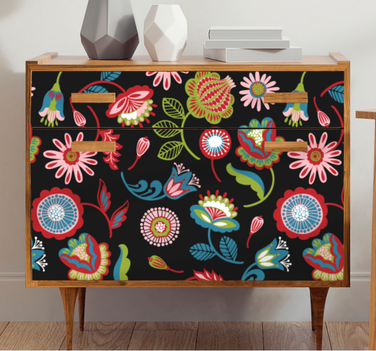 Verleihen Sie Ihrem Raum mit unserem Wandtattoo Ornament lebhaftes blumenmotiv ein fröhliches und lebendiges Flair! Das Design begeistert mit einem farbenfrohen Blumenmuster, das die Schönheit der Natur auf eine dekorative Weise widerspiegelt. Die kunstvollen Blumen und das volkstümliche Muster schaffen eine harmonische Verbindung zwischen modernen Möbeln und der natürlichen Umgebung. Ideal für jeden Raum, bringt dieses Wandtattoo eine frische und einladende Atmosphäre in Ihr Zuhause!