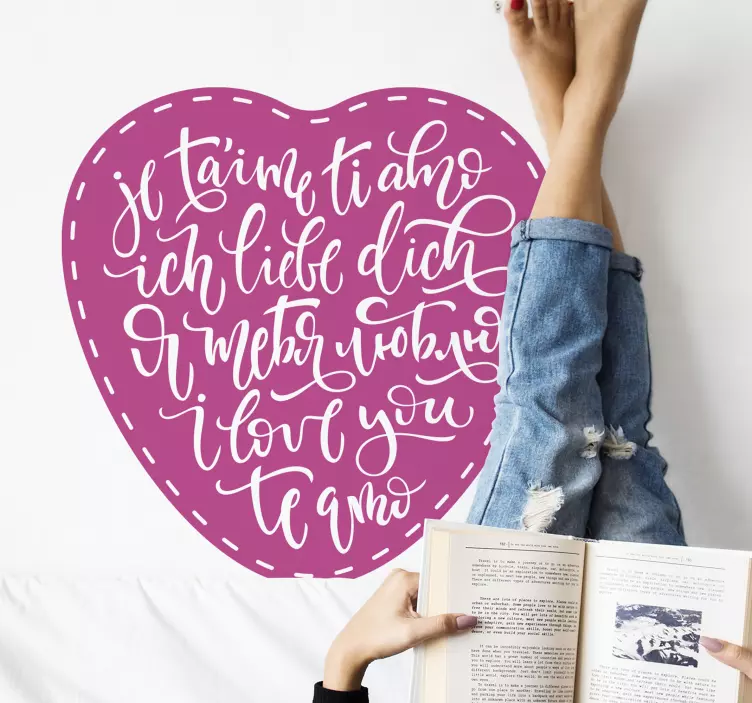 Entdecken Sie die Schönheit und Emotion des Wandtattoos Rezept herzliche liebesbotschaften, das mit einem liebevollen Herz-Design und kalligraphischen Texten in verschiedenen Sprachen begeistert. Diese mehrsprachigen und dekorativen Botschaften sind perfekt, um Ihre Wände mit einer romantischen Atmosphäre zu versehen und Ihre tiefsten Gefühle auszudrücken. Die Kombination aus emotionalen Aussagen und einem stilvollen Design macht dieses Produkt zu einem echten Hingucker!