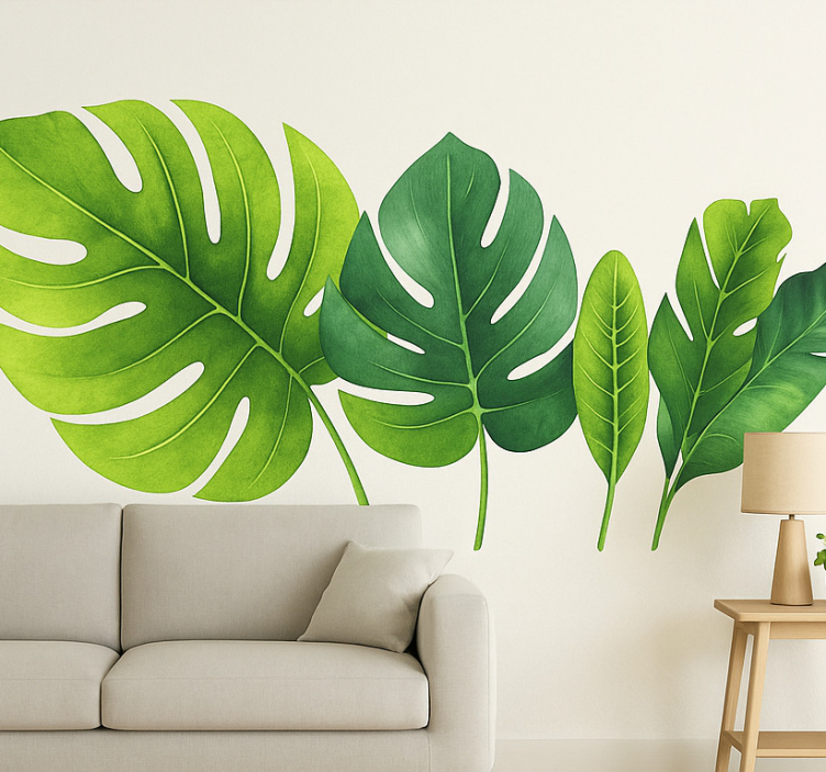 Referenz: A54961Gestalten Sie Ihre Wände mit unserem Wandtattoo tropische palmenblätter, das mit satinierten Oberflächen gefertigt wird, um eine harmonische Atmosphäre zu schaffen. Die sanften Farben und die detailreiche Gestaltung der Palmenblätter verleihen jedem Raum eine frische und exotische Note. Durch die hervorragende Farbintensität wird das Design zum echten Blickfang, während die reflektionsfreie Oberfläche sorgt, dass Ihr Raum immer einladend wirkt. Die Verwendung von hochwertigem Vinyl garantiert ein angenehmes Gefühl und eine Langlebigkeit von etwa 8-10 Jahren.