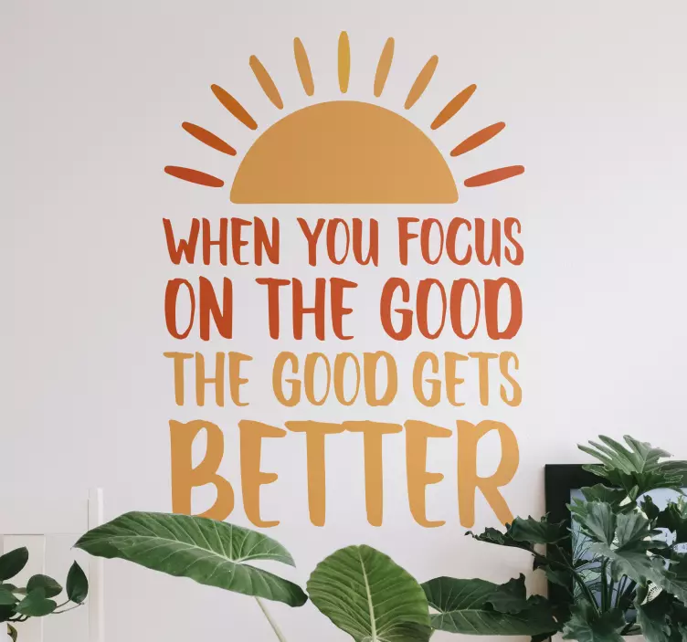 Entdecken Sie unser einzigartiges Wandtattoo Welt positive Denkweise Zitat, das Ihr Zuhause in eine Oase der Inspiration verwandelt. Dieses kunstvolle Design kombiniert warme Farben mit motivierenden Texten, die Ihnen helfen, Ihre Fokus und guten Gedanken zu stärken. Es bringt eine bessere Sichtweise auf das Leben, während die Sonne durch die lebhaften Farben förmlich strahlt. Lassen Sie sich von der Motivation und Inspiration dieses Zitats anstecken und gestalten Sie Ihre Wohnkultur positiv!