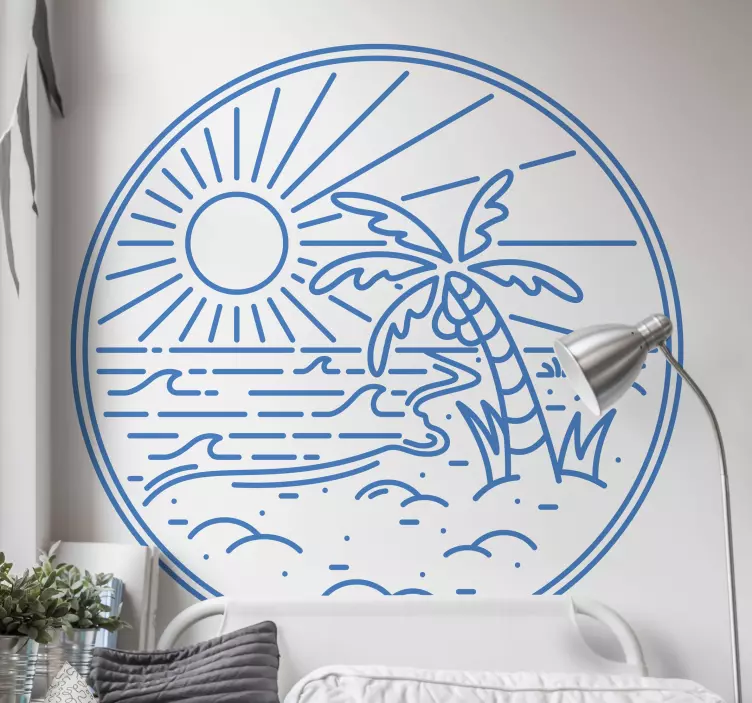 Erleben Sie die Schönheit der Natur mit unserem Wandtattoo Welt tropische küstenansicht. Dieses faszinierende Design zeigt eine harmonische Komposition aus einem Kreis, einem Strand, einer Palme, dem Meer und sanften Wellen, umgeben von einem klaren Himmel mit strahlender Sonne. Die Umrisszeichnung vermittelt ein Gefühl von Freiheit und Ruhe, ideal für Ihre Wände und um Ihr Zuhause in eine tropische Oase zu verwandeln. Genießen Sie die tropische Atmosphäre und lassen Sie sich von der unberührten Landschaft inspirieren!