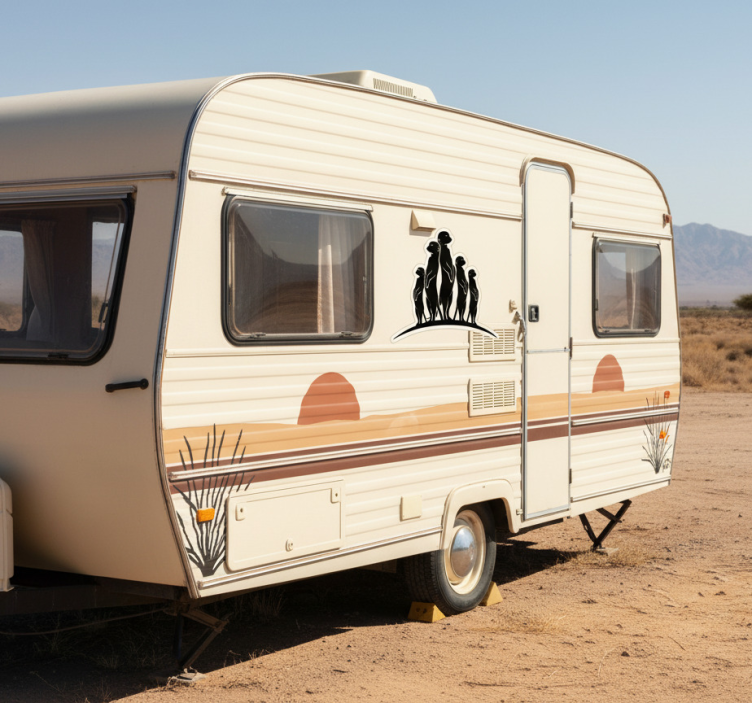 Ein Wohnmobil Aufkleber mit einer neugierigen Erdmännchen Familie ist der perfekte Weg, um Ihrem Wohnwagen Persönlichkeit zu verleihen! Diese lebendige Darstellung sorgt nicht nur für ein Lächeln bei Reisenden, sondern macht Ihr Fahrzeug auch in einem überfüllten Campingplatz unverwechselbar. Die Erdmännchen vermitteln ein Gefühl von Abenteuer und Spaß, was Ihre Reisen unvergesslich macht. Dekorieren Sie Ihren Wohnwagen mit diesem Aufkleber und bringen Sie Freude auf Ihre Reisen!