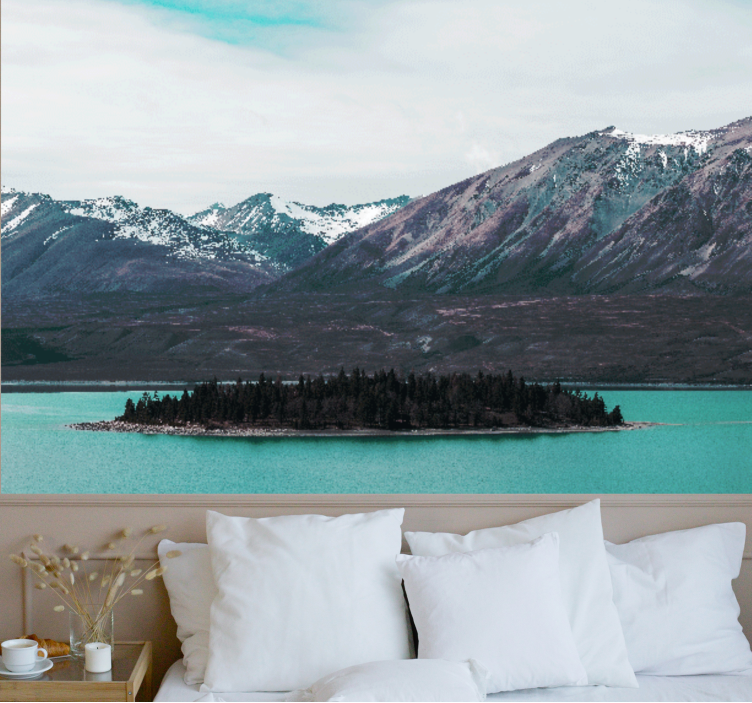 Entdecken Sie die faszinierende Fototapete Landschaften bergsee insel, die Ihre Wände in ein Meisterwerk der Natur verwandelt. Mit einem atemberaubenden Design, das eine idyllische Insel umgeben von majestätischen Bergen und einem ruhigen See zeigt, bringt diese Fotografie die Schönheit der Natur direkt in Ihr Zuhause. Lassen Sie sich von der harmonischen Landschaft verzaubern und genießen Sie den Anblick, der jeden Raum mit Frische und Lebendigkeit erfüllt!
