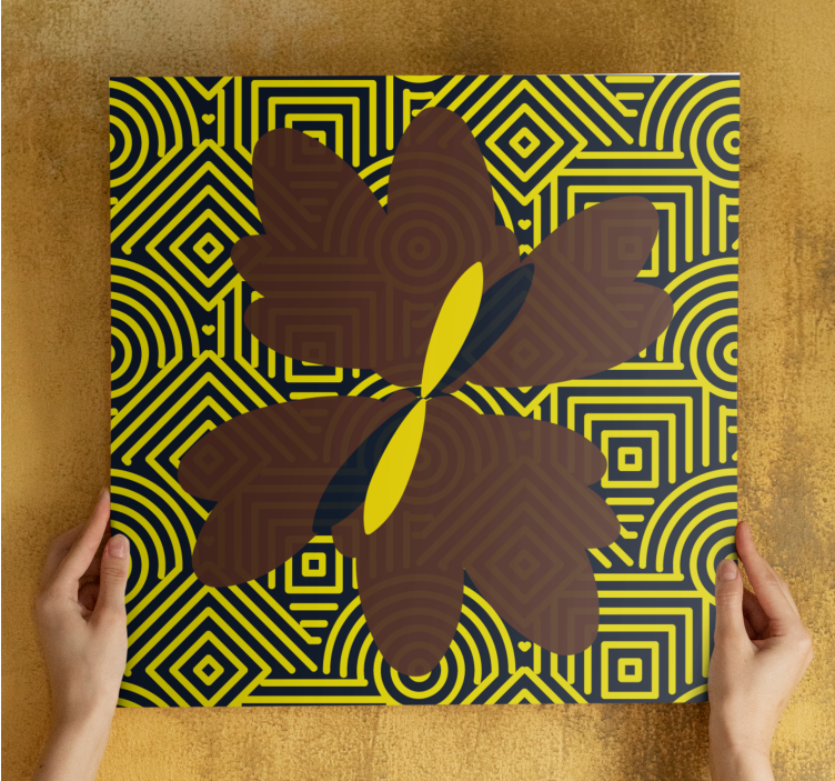 Referenz: Q7834Dieses Design zeigt ein stilisiertes florales Motiv, das zentral vor einem lebhaften geometrischen Hintergrund positioniert ist. Die Kombination aus organischen Formen und kunstvollen Mustern schafft ein dynamisches visuelles Erlebnis, das die Schönheit der Natur mit kühnen Designelementen verbindet.