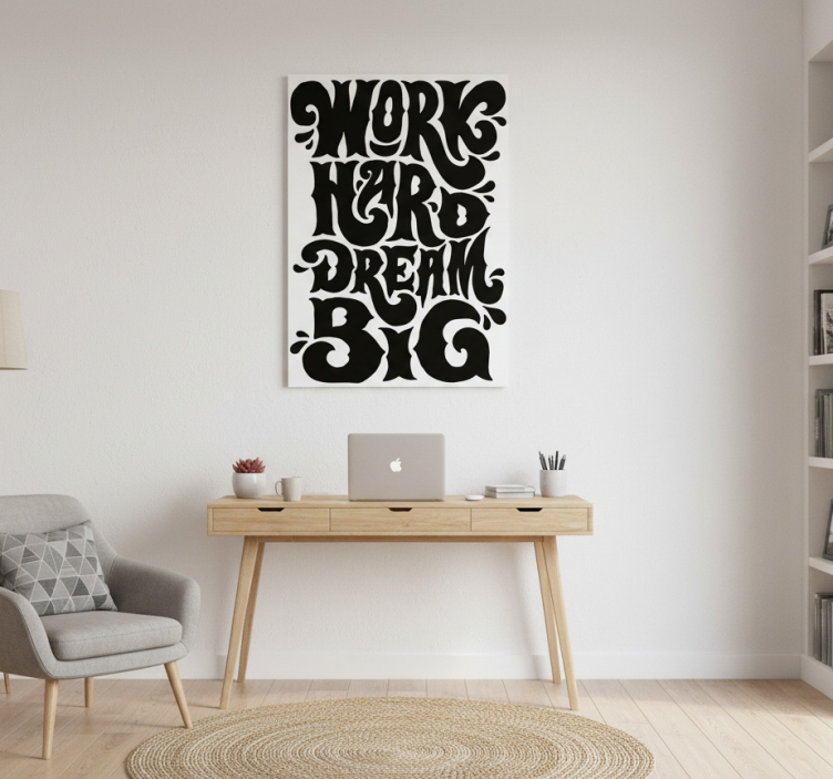 Ein Poster Büro poster büro hart arbeiten groß träumen ist nicht nur ein schöner Blickfang, sondern auch eine Quelle der Inspiration. Es erinnert Sie täglich daran, dass harte Arbeit und große Träume Hand in Hand gehen. Durch seine lebendige Gestaltung motiviert es sowohl Sie als auch Ihre Kollegen, das Beste aus jedem Tag herauszuholen. Verleihen Sie Ihrem Büro eine persönliche Note und schaffen Sie eine positive Arbeitsumgebung, die jeden dazu anregt, seine Ziele zu verfolgen!