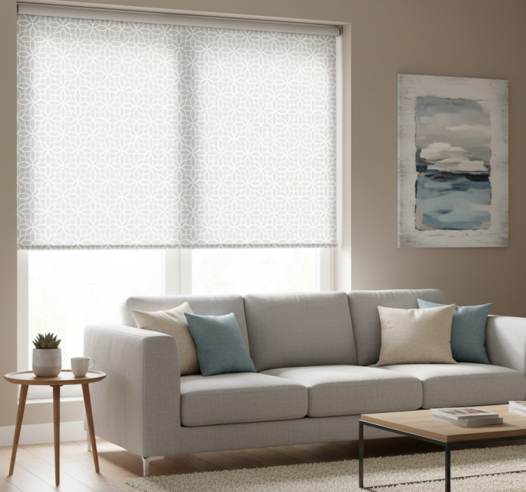 Fenster rollo modern in grau-weißem muster