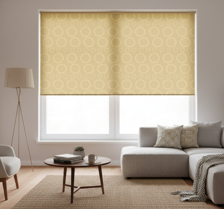 Referenz: E7681Entdecken Sie unser Fenster Rollo modern mit goldenen hexagon-mustern, das mit seinem einzigartigen Design jeden Raum in eine stilvolle Oase verwandelt. Die grafische Gestaltung besticht durch harmonische goldene Hexagon-Muster, die Eleganz und Modernität ausstrahlen. Dieses Rollo schützt nicht nur vor direkter Sonneneinstrahlung, sondern sorgt auch für Privatsphäre und ermöglicht die Regulierung der Raumtemperatur. Egal ob im Wohnzimmer, Schlafzimmer oder Büro – es ist die perfekte Wahl, um Ihr Zuhause zu verschönern!