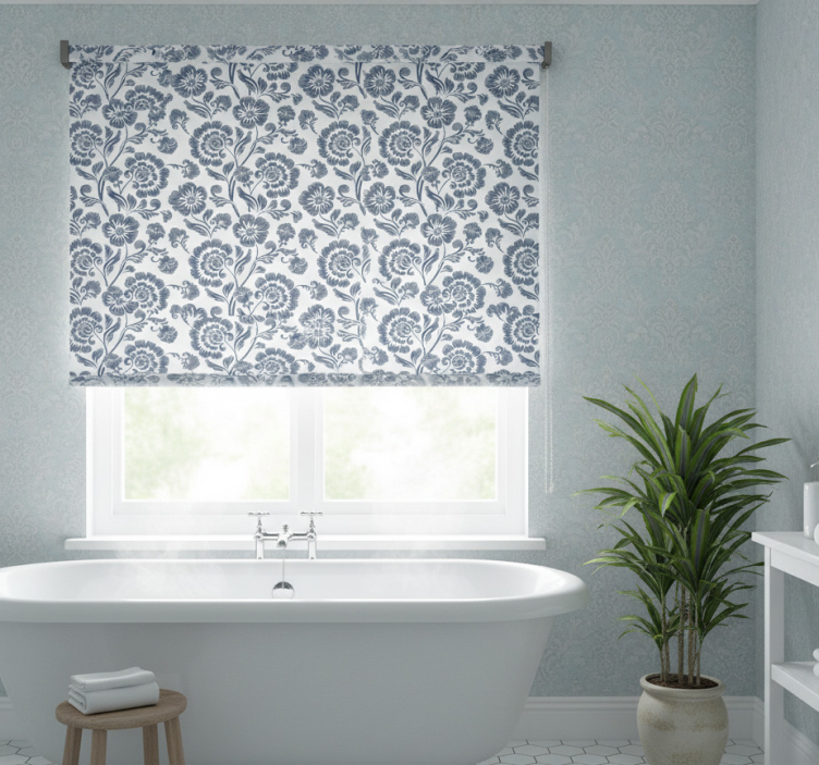 Rollo fenster badezimmer blaue blumen auf weißem hintergrund