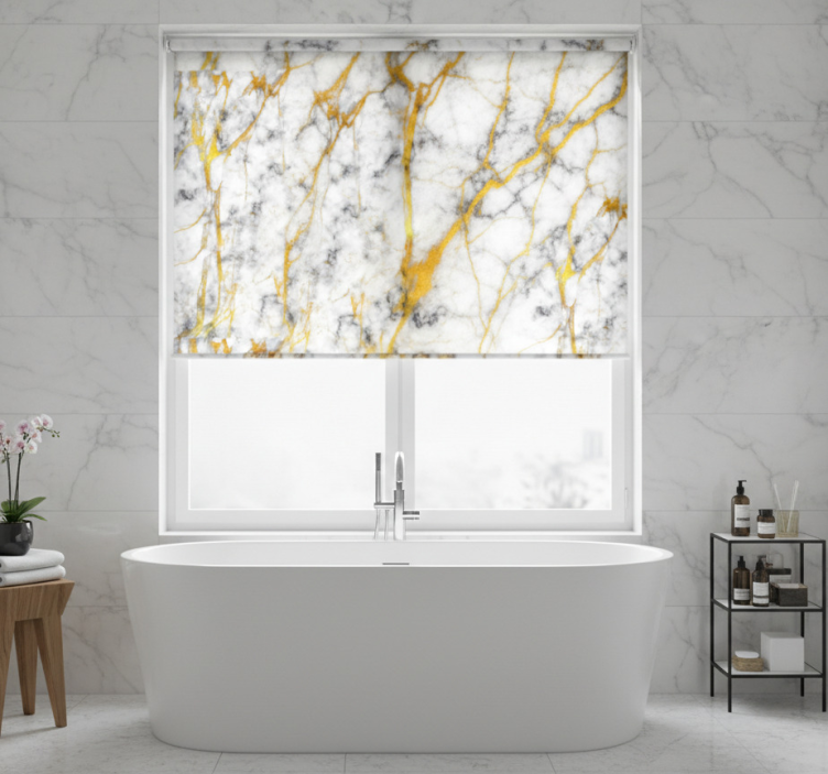 Rollo fenster badezimmer elegantes grau und gold marmor
