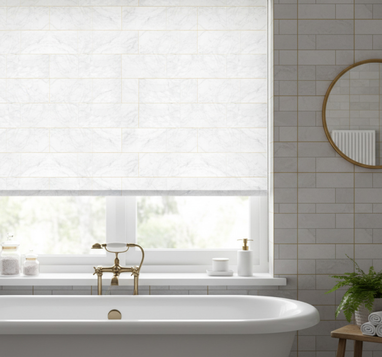 Rollo fenster badezimmer in grautönen mit goldmarmor