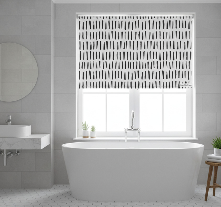 Das Rollo Fenster Badezimmer mit eleganten schwarzen streifen ist die ideale Lösung, um Ihrem Badezimmer eine stilvolle Note zu verleihen. Es schützt nicht nur vor direkter Sonneneinstrahlung und sorgt für die notwendige Privatsphäre, sondern trägt auch zur Regulierung der Raumtemperatur bei. Genießen Sie die Sicherheit, die Ihnen dieses Rollo bietet, da Sie nach außen sehen können, ohne selbst gesehen zu werden. Lassen Sie Ihr Badezimmer erstrahlen und schaffen Sie eine angenehme Atmosphäre mit diesem dekorativen Produkt!