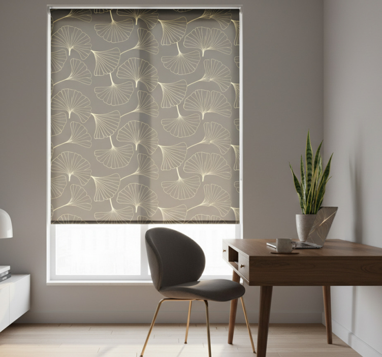 Rollo fenster home office ginkgo blätter anthrazit gold