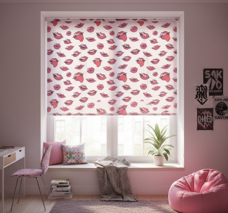 Rollo fenster jugendzimmer abstrakte lippen und zunge