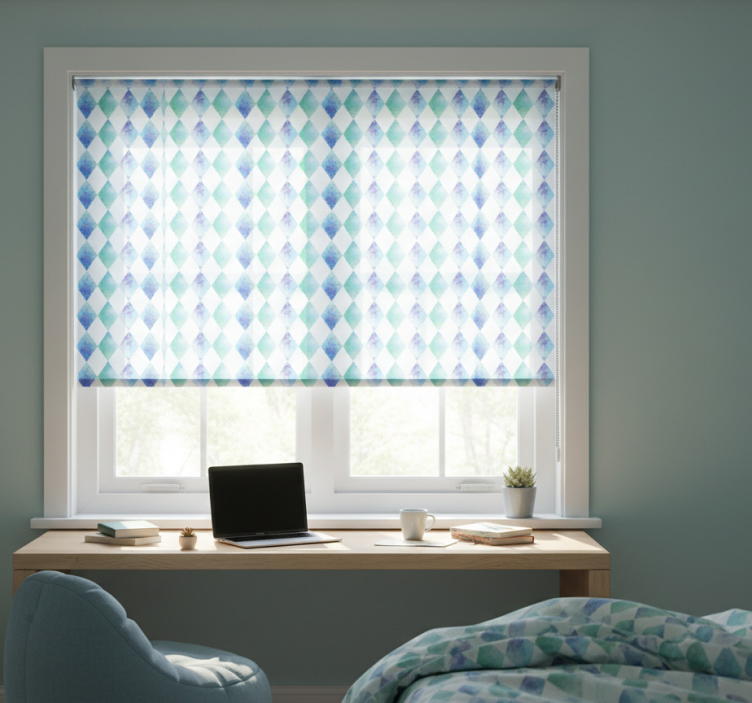 Rollo fenster jugendzimmer aquarell rautenmuster