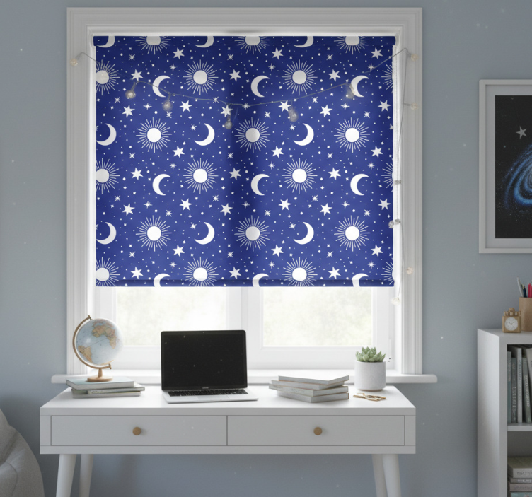 Referenz: E7468Das Rollo Fenster Jugendzimmer blaue Sterne und Monde verleiht jedem Raum eine magische Note. Mit seinem grafischen Design, das bezaubernde blaue Sterne und Monde zeigt, wird es zum Blickfang in jedem Jugendzimmer. Dieses Rollo bietet nicht nur eine ansprechende Optik, sondern auch praktische Funktionen, die den Alltag erleichtern.