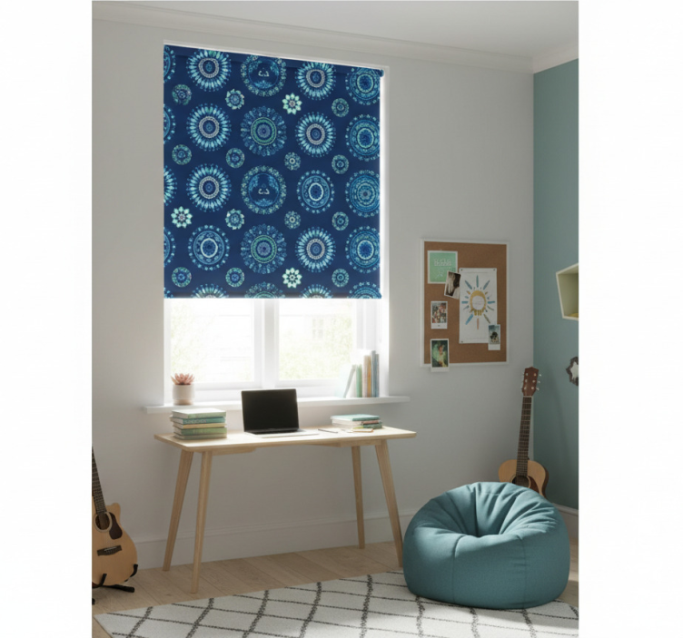 Rollo fenster jugendzimmer blaues abstraktes muster