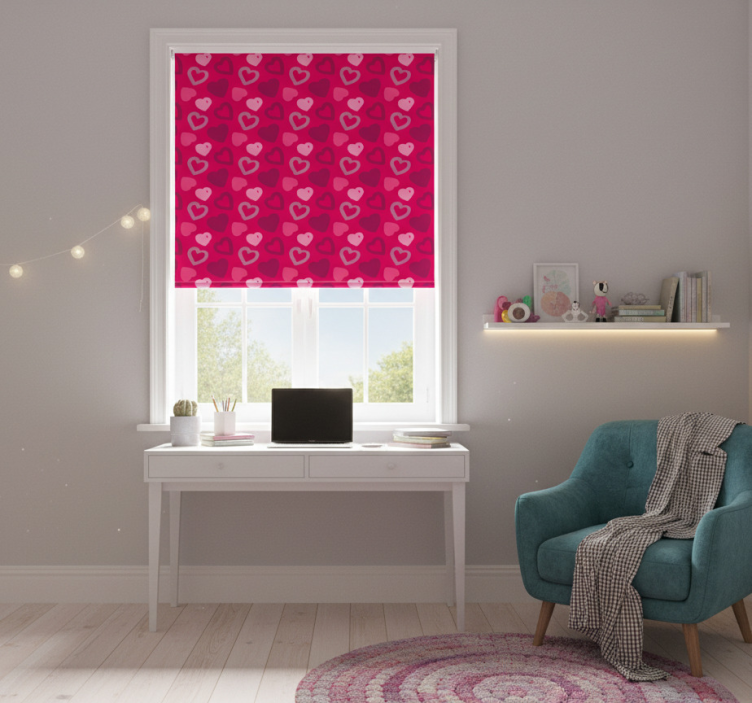 Rollo fenster jugendzimmer fuchsia herzen