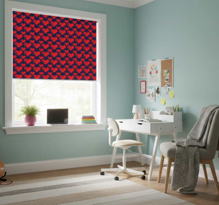 Referenz: E7543Entdecken Sie unser einzigartiges Rollo Fenster Jugendzimmer geometrisches Herzmuster rot blau, das mit seinem lebendigen Design und den harmonischen Farben jeden Raum zum Strahlen bringt. Das geometrische Herzmuster in Rot und Blau schafft eine fröhliche Atmosphäre, die perfekt für jedes Jugendzimmer geeignet ist. Durch die Kombination von ansprechendem Design und praktischen Funktionen wird dieses Rollo nicht nur zum Blickfang, sondern auch zu einem funktionalen Element in Ihrem Zuhause.