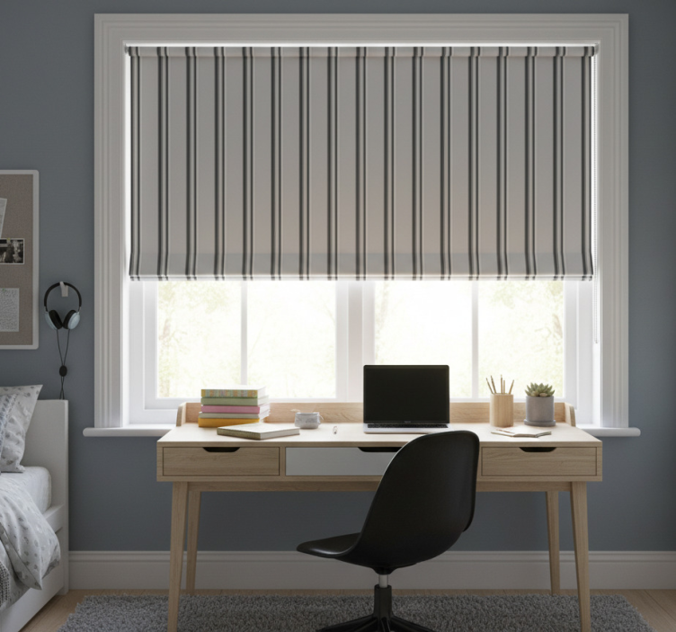 Rollo fenster jugendzimmer im grauen streifenstil