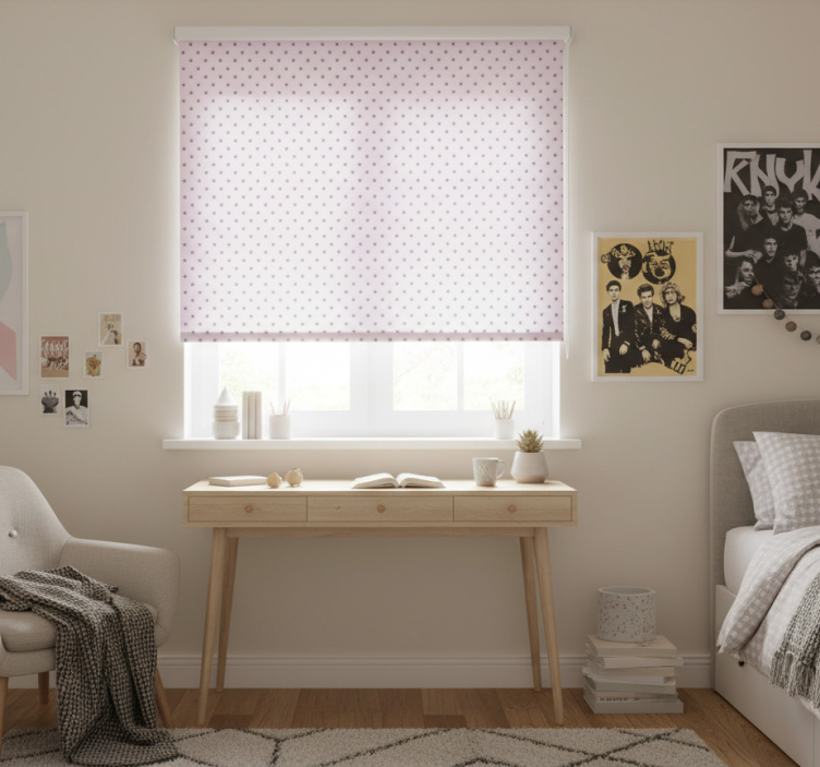 Rollo fenster jugendzimmer graue sterne auf rosa hintergrund
