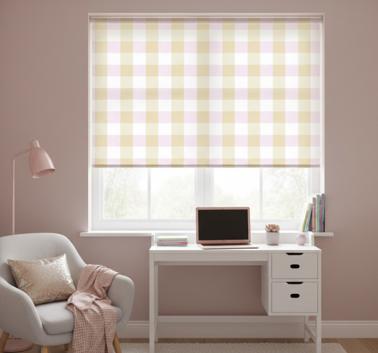 Rollo fenster jugendzimmer in pink und gold karomuster