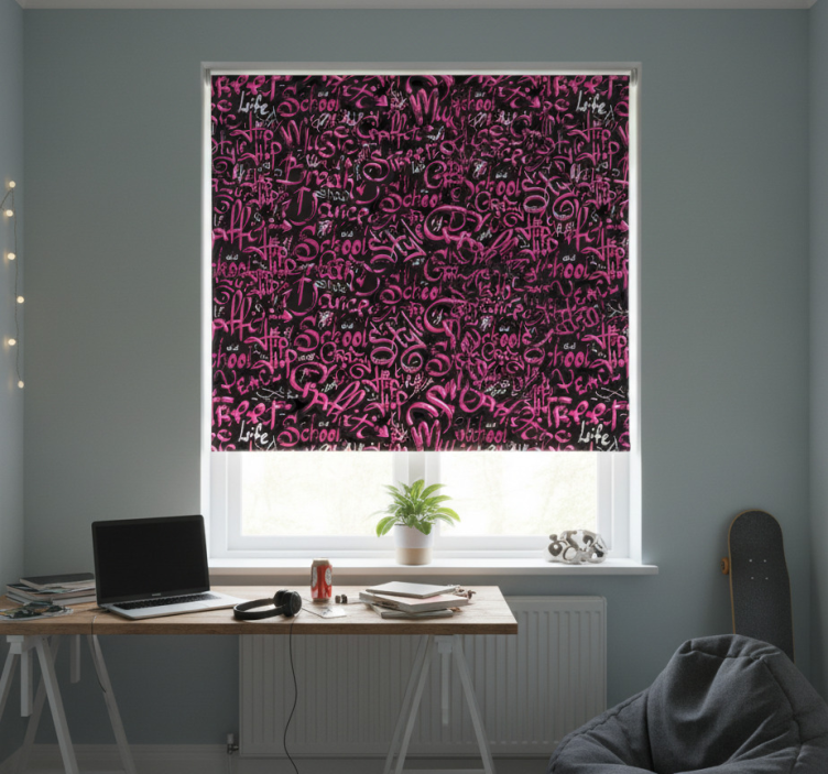 Rollo fenster jugendzimmer in pink und schwarz graffiti