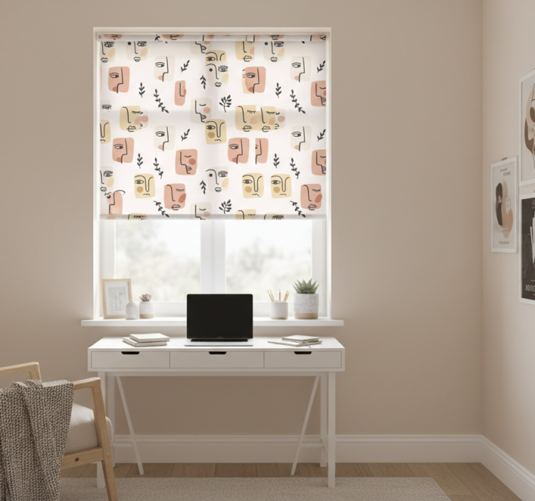 Rollo fenster jugendzimmer mit abstraktem gesichtermuster
