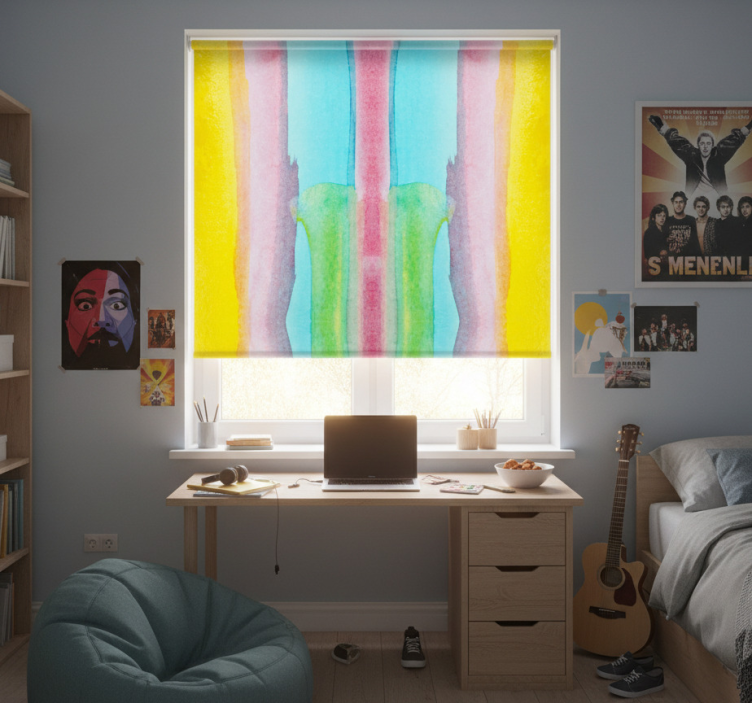Rollo fenster jugendzimmer mit buntem hintergrund