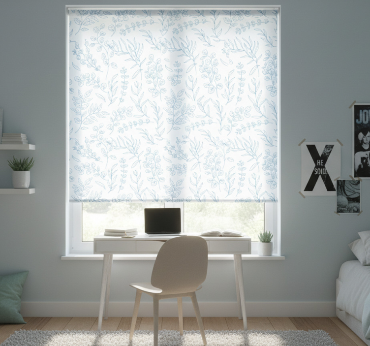 Referenz: E7496Das Rollo Fenster Jugendzimmer mit dünnen Pflanzen bringt frischen Wind in jedes Jugendzimmer! Mit einem ansprechenden Design, das zarte Pflanzenmuster harmonisch integriert, schafft es eine angenehme Atmosphäre. Die sanften Farben und das stilvolle Layout verbinden Funktionalität mit einer geschmackvollen Dekoration. Die einfache Montage mit nur zwei Klicks macht es zu einer praktischen Wahl für jeden Raum. Dieses Rollo schützt nicht nur vor direkter Sonneneinstrahlung, sondern trägt auch zur Regulierung der Raumtemperatur bei und bietet gleichzeitig Privatsphäre im abgesenkten Zustand.
